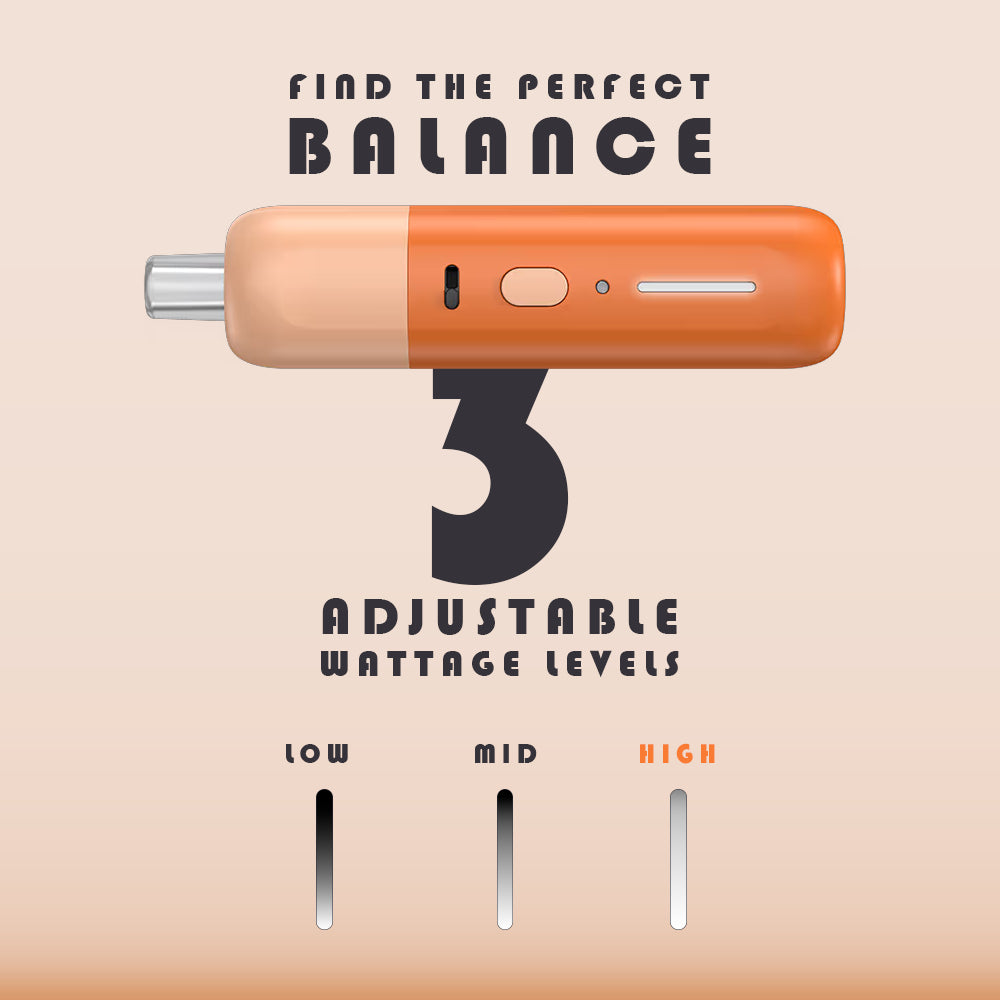 The Fluffi Mini features adjustable 3 constant wattage levels: 'Low', 'Mid', and 'High'. Whether you want a subtle flavour at low power or a more intense hit at high power, these settings allow you to easily find the perfect balance for your ideal vape.