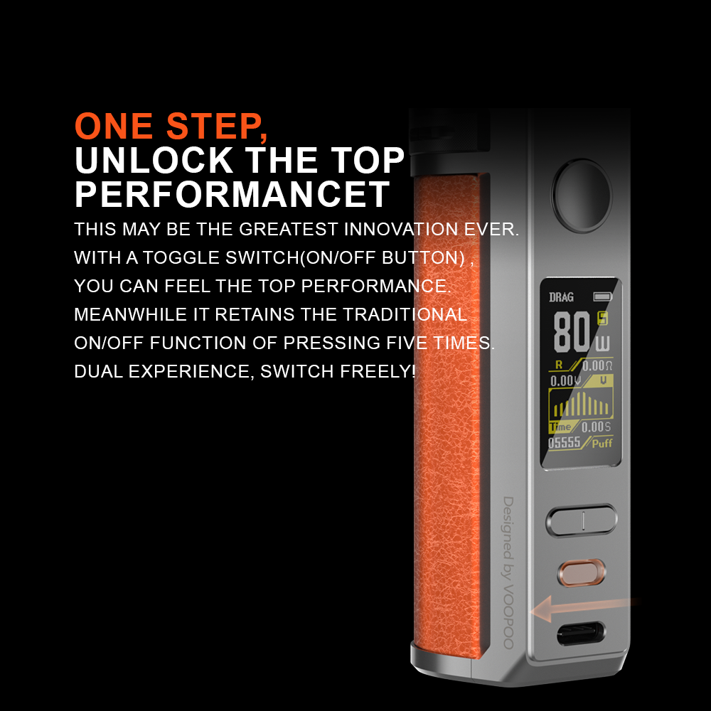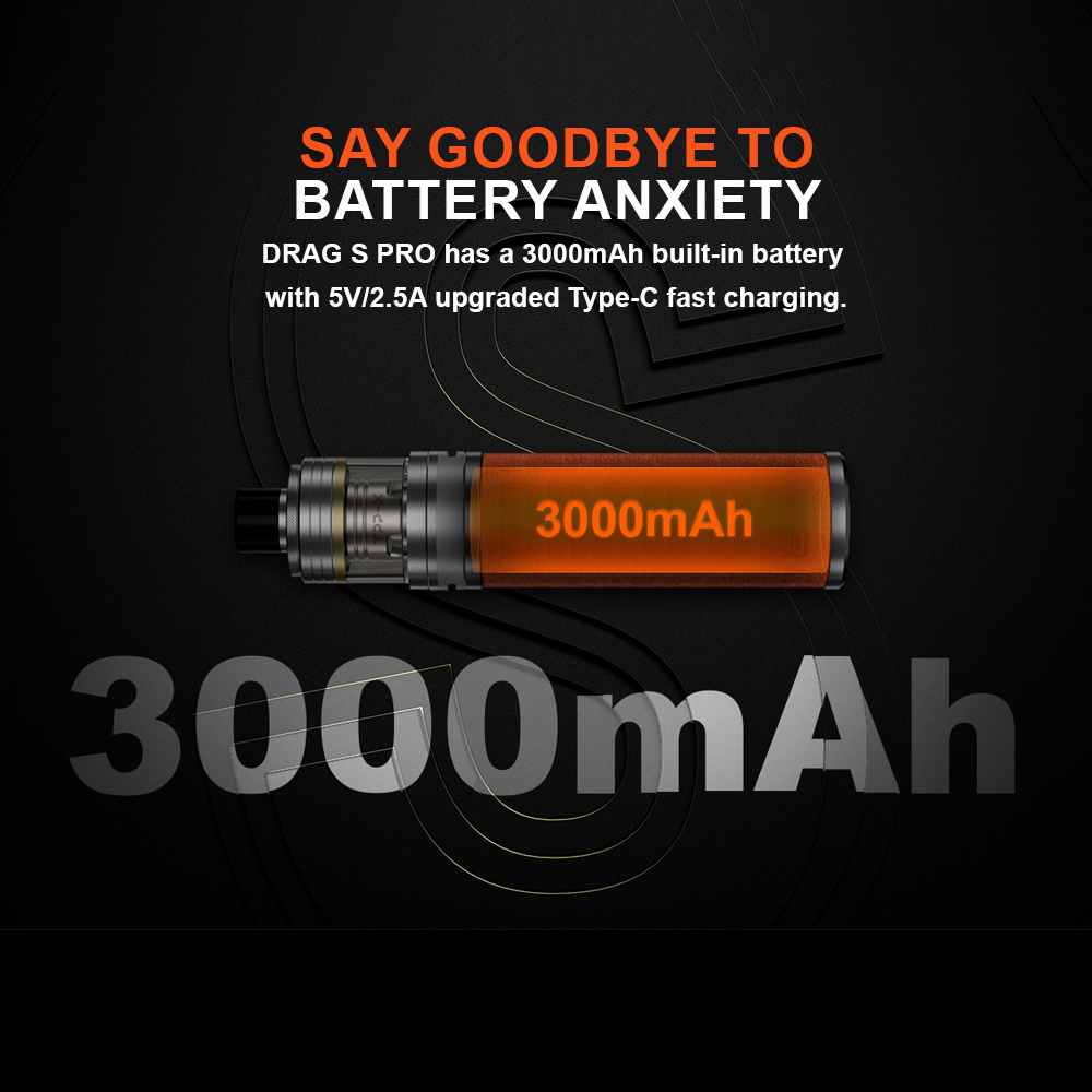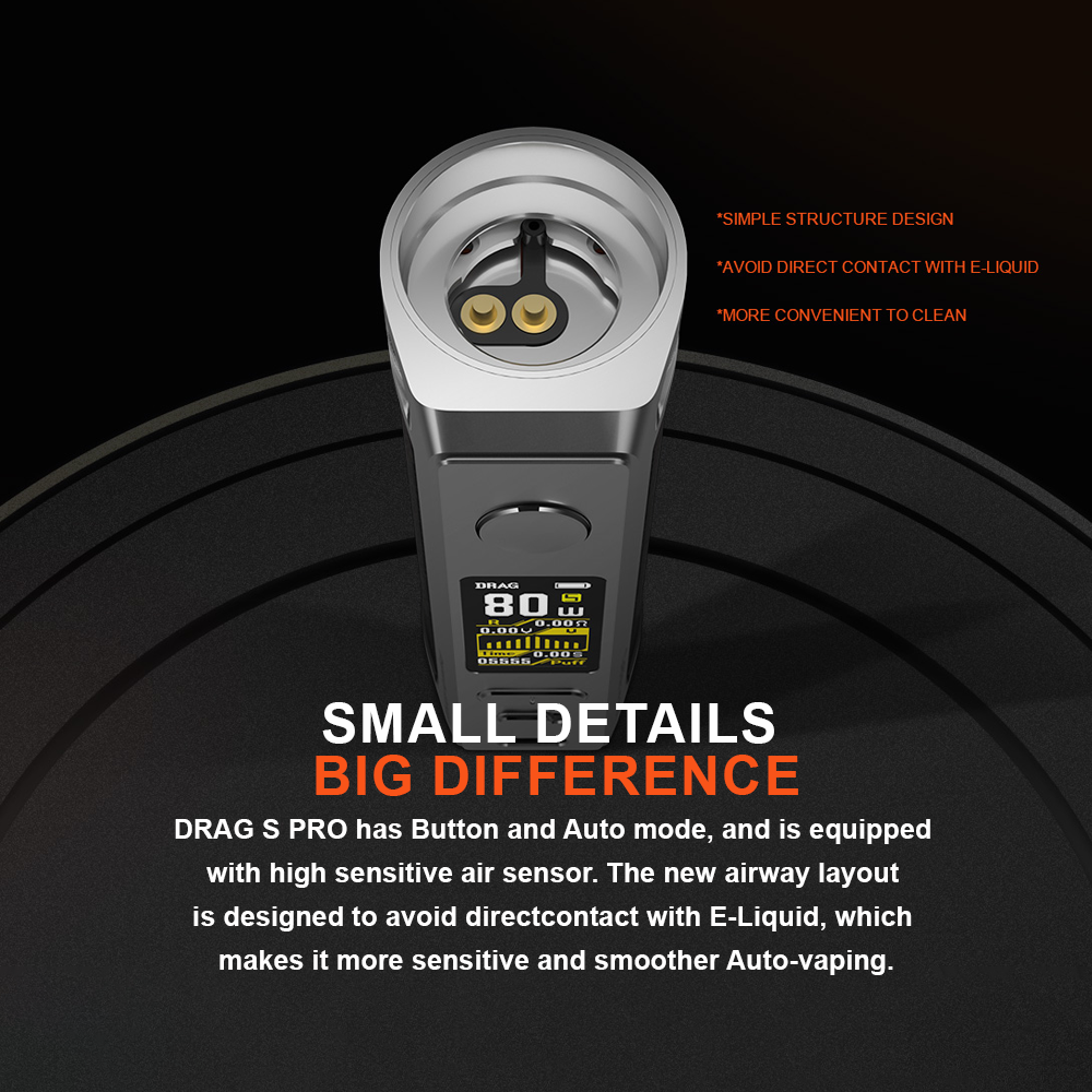 DRAG S PRO is equipped with two TPP coils of 0.15Ω and 0.3Ω. They will let you feel the TPP coils of big clouds with incredible flavours.