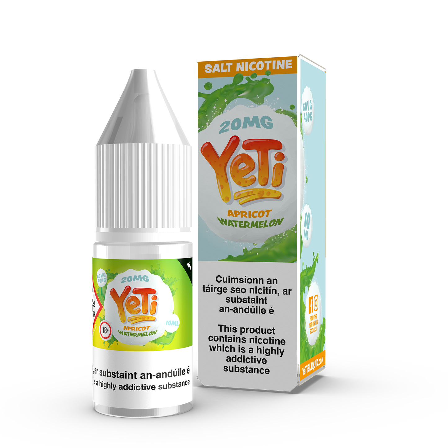 Yeti Apricot Watermelon Nicotine Salt features a juicy combo of tangy Apricots fused with sweet and juicy Watermelons then paired with ice menthol creating a fruity yet frosty vape flavour.